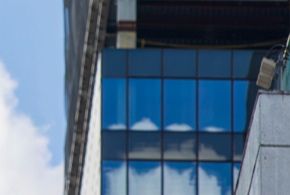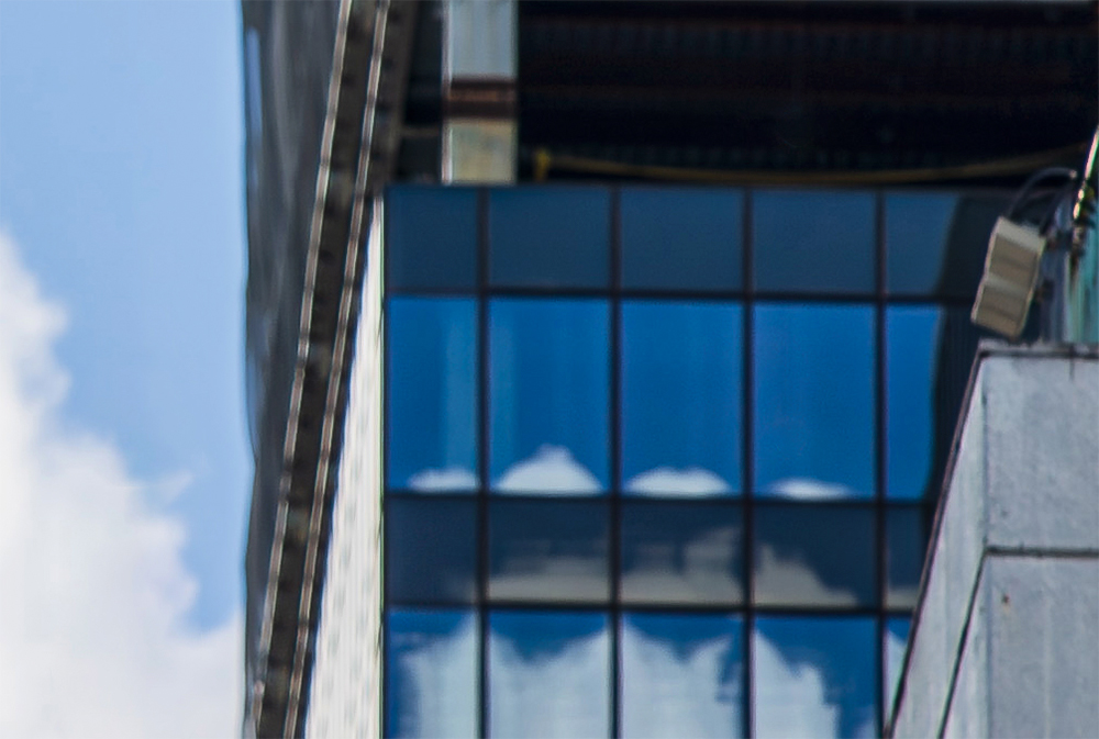 ビルの外観の拡大画像。全体的にぼやけている。